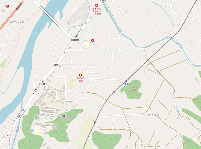 openstreetmap(OSM)で大分市の地図を見ていると滝尾駅の近くに山を表す”△”の碇山を発見。